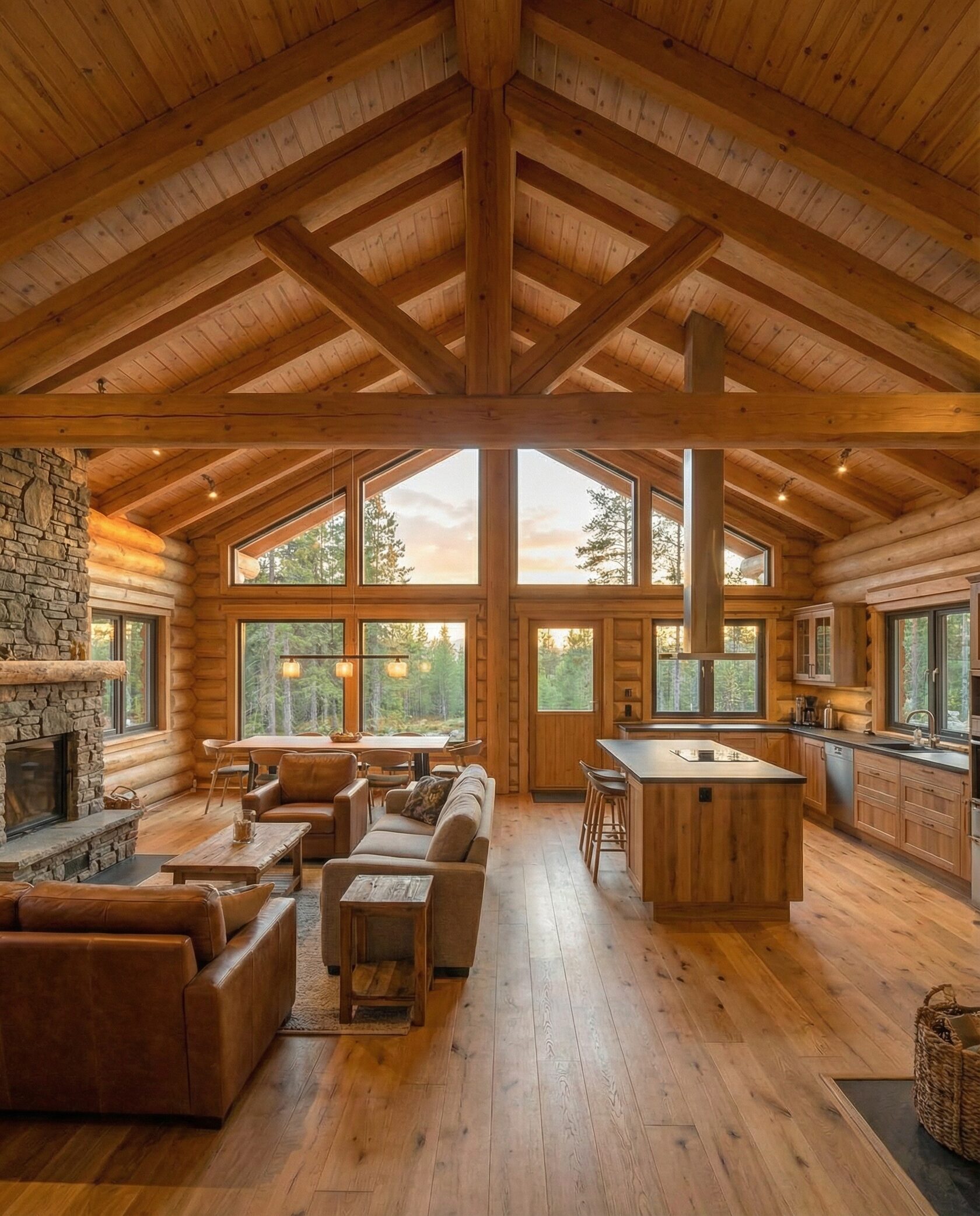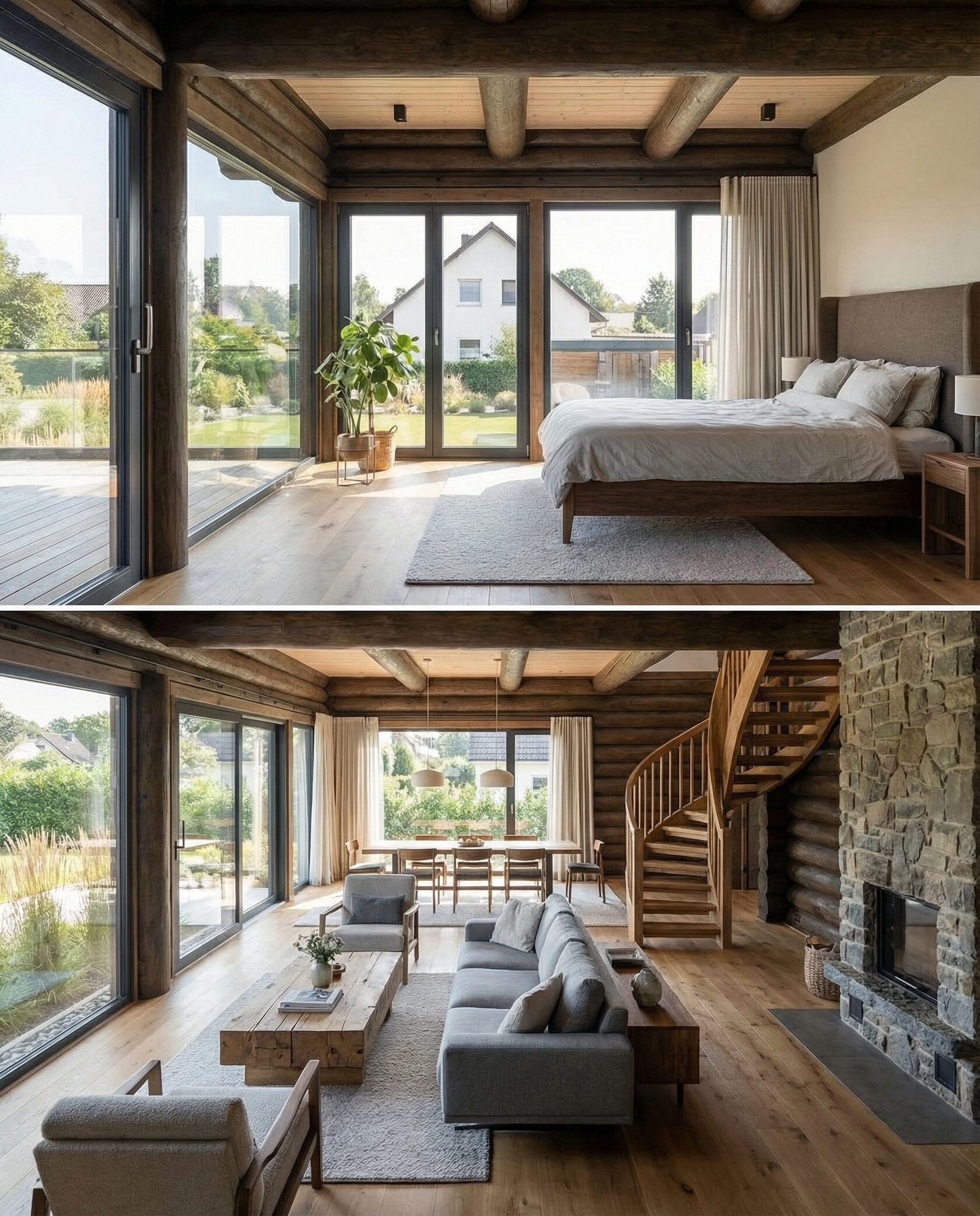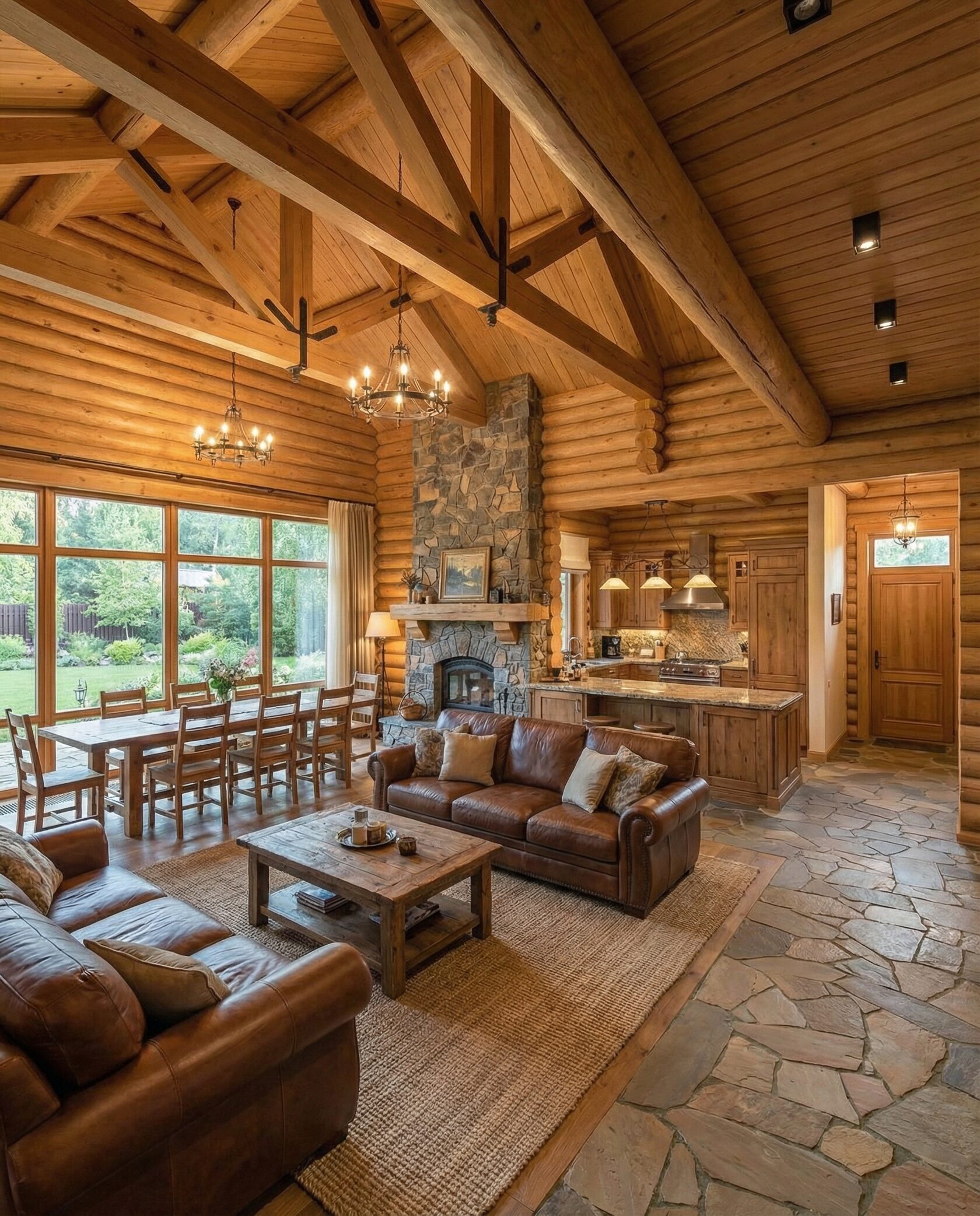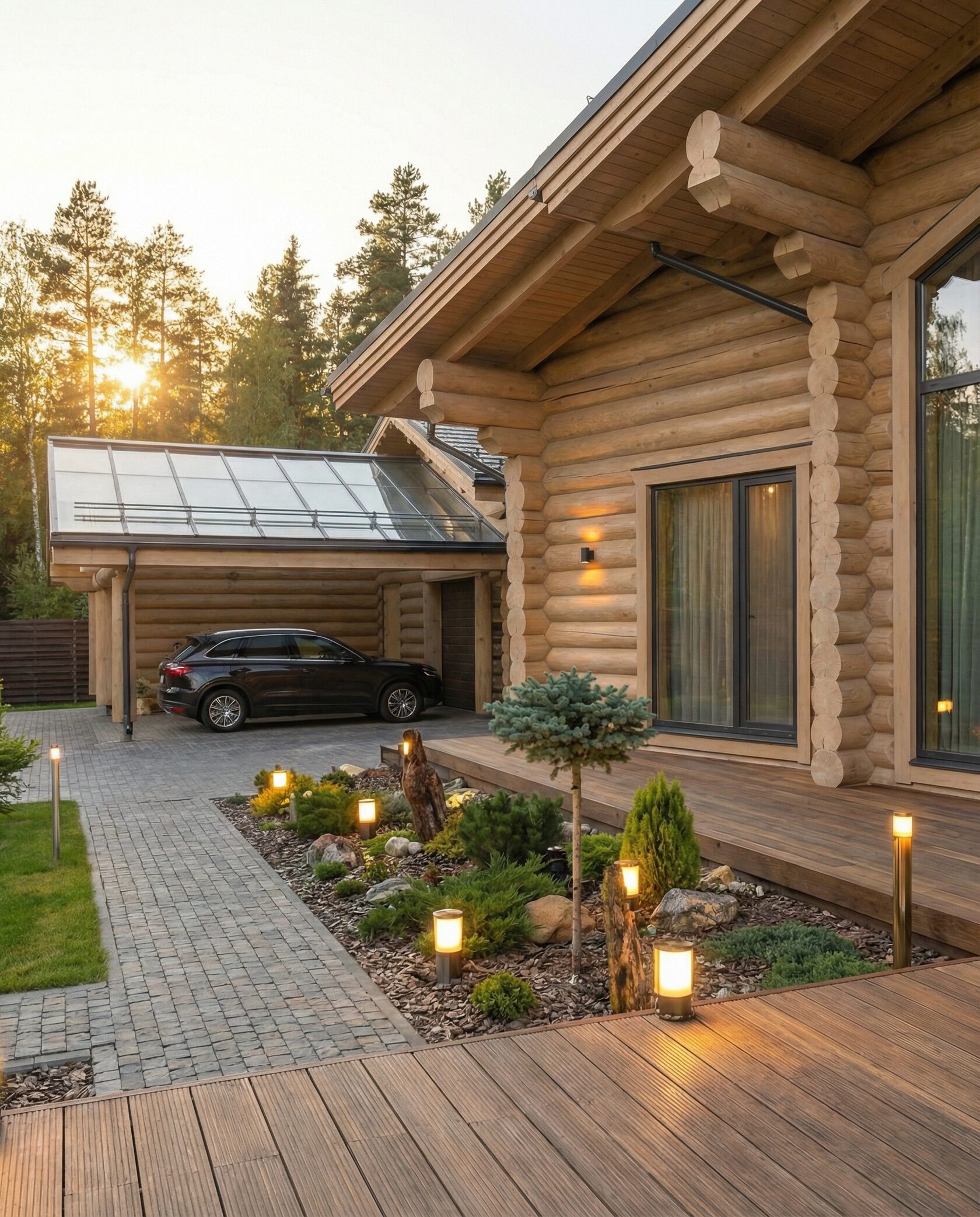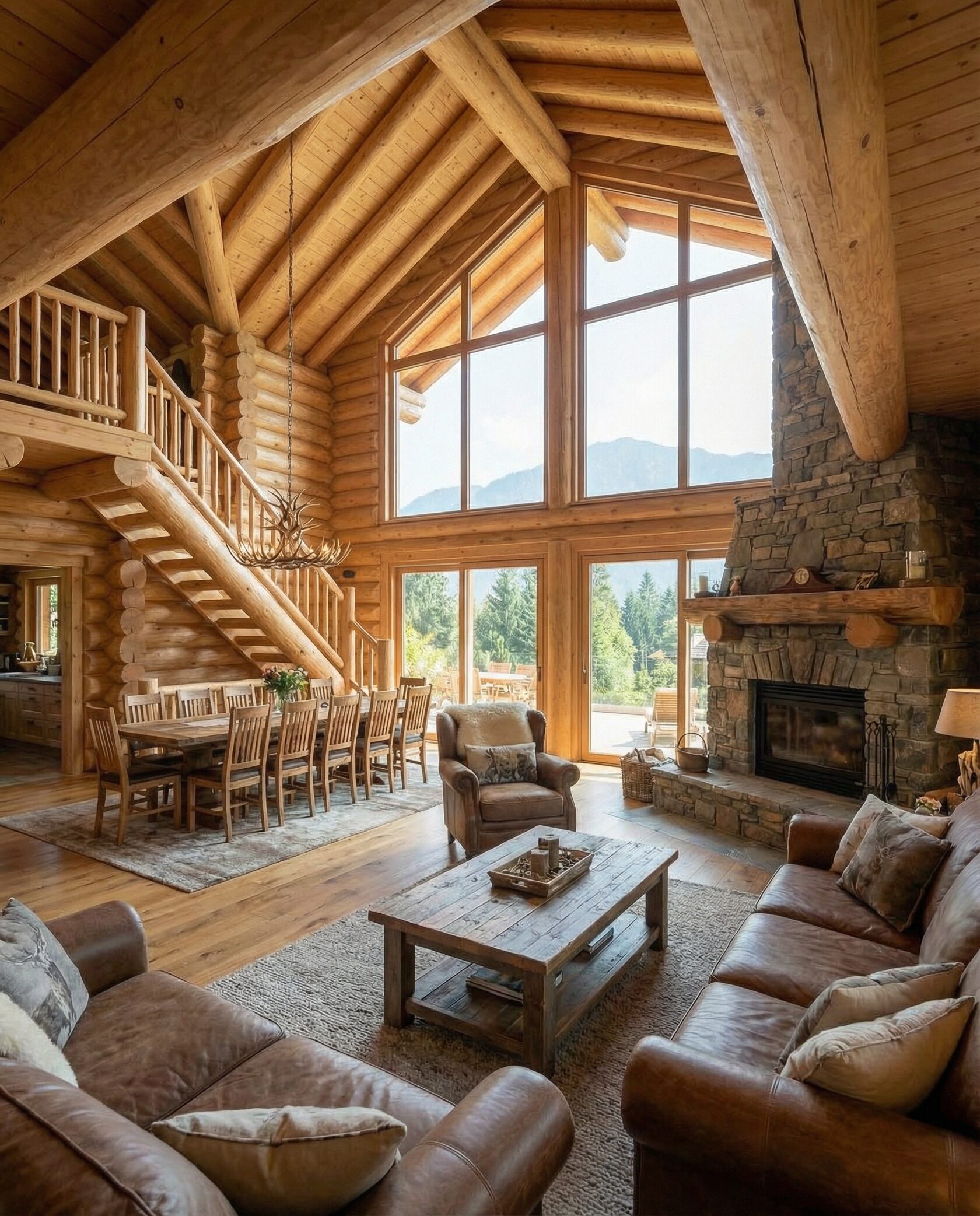 Дом «Алиот» — премиальный двухэтажный дом из оцилиндрованного бревна, где гармонично сочетаются эко-эстетика, свет, простор и технологичность. Панорамные окна на два этажа наполняют интерьер естественным светом и объединяют гостиную с природой, а камин создаёт уютный центр дома. Планировка продумана для максимального комфорта: двусветное пространство, открытая кухня с островом, просторные спальни с балконами, функциональное зонирование и стильные архитектурные элементы. Преимущества: долговечное оцилиндрованное бревно, энергоэффективные окна, шумоизоляция, просторные террасы, экологичные материалы и престижный современный дизайн. Дом «Алиот» — выбор для тех, кто ценит премиальный комфорт, простор и близость к природе.