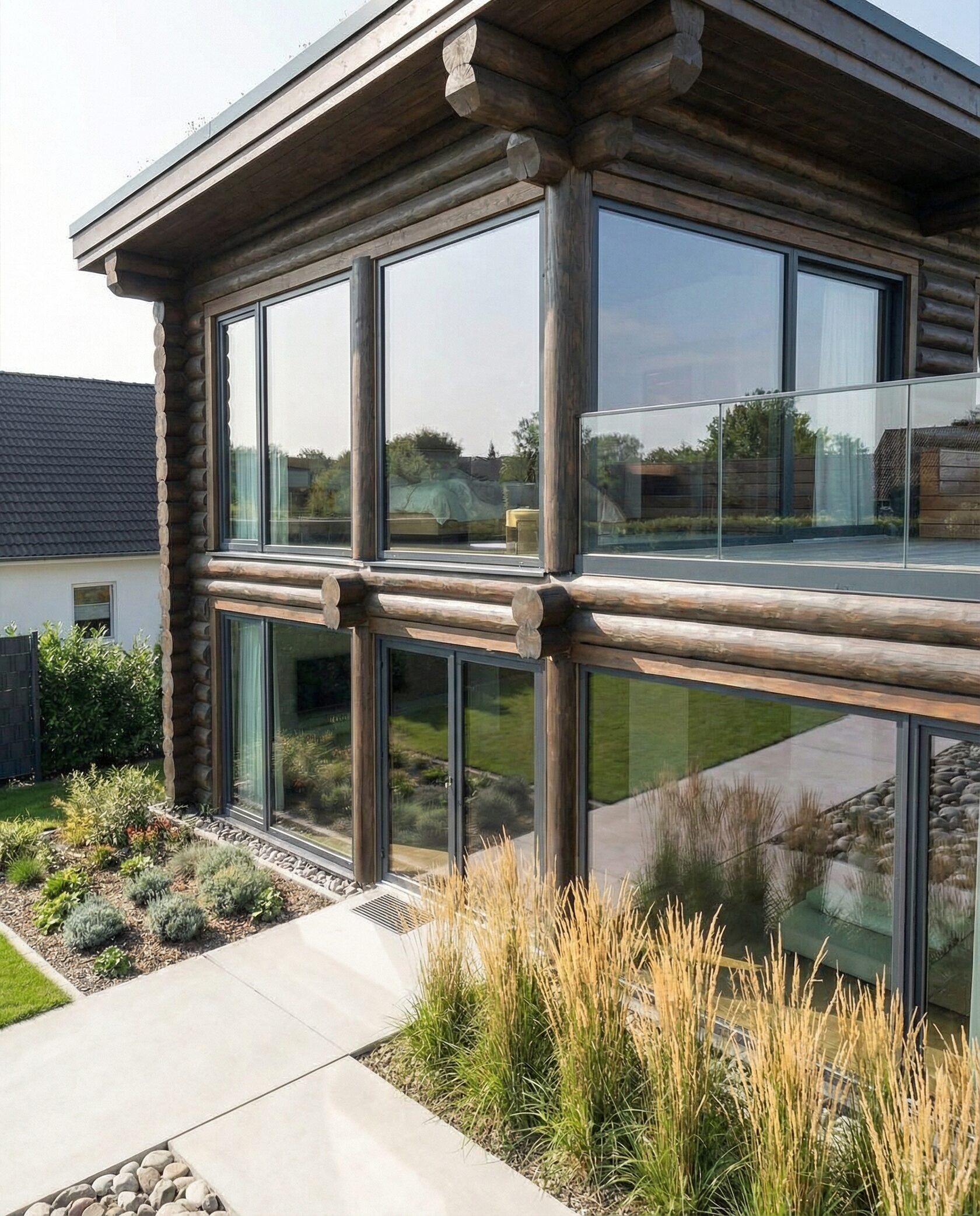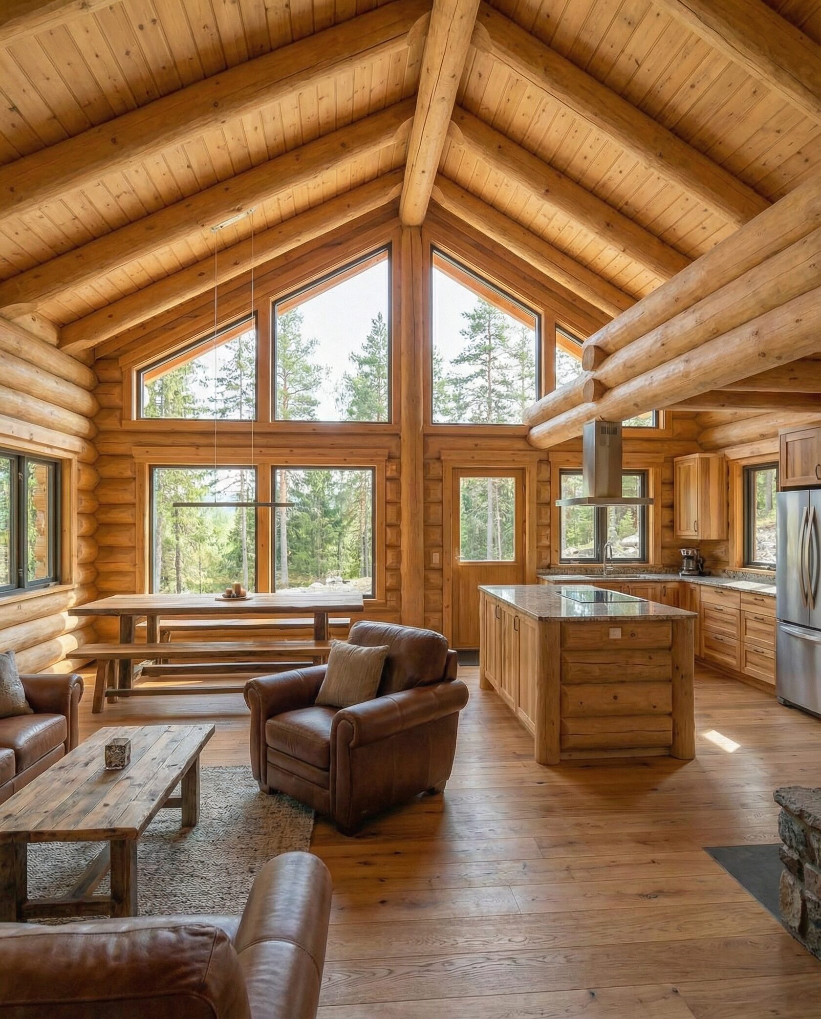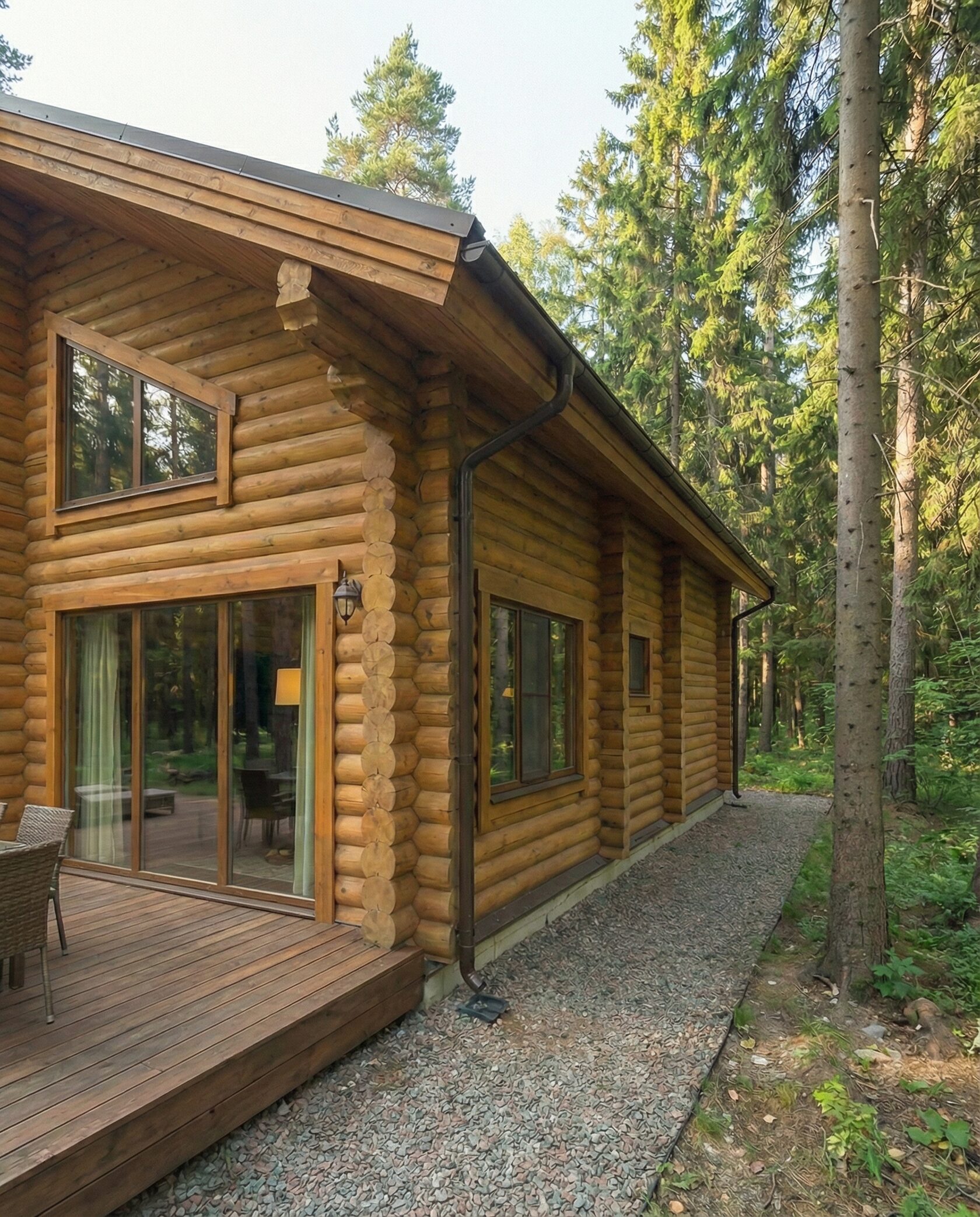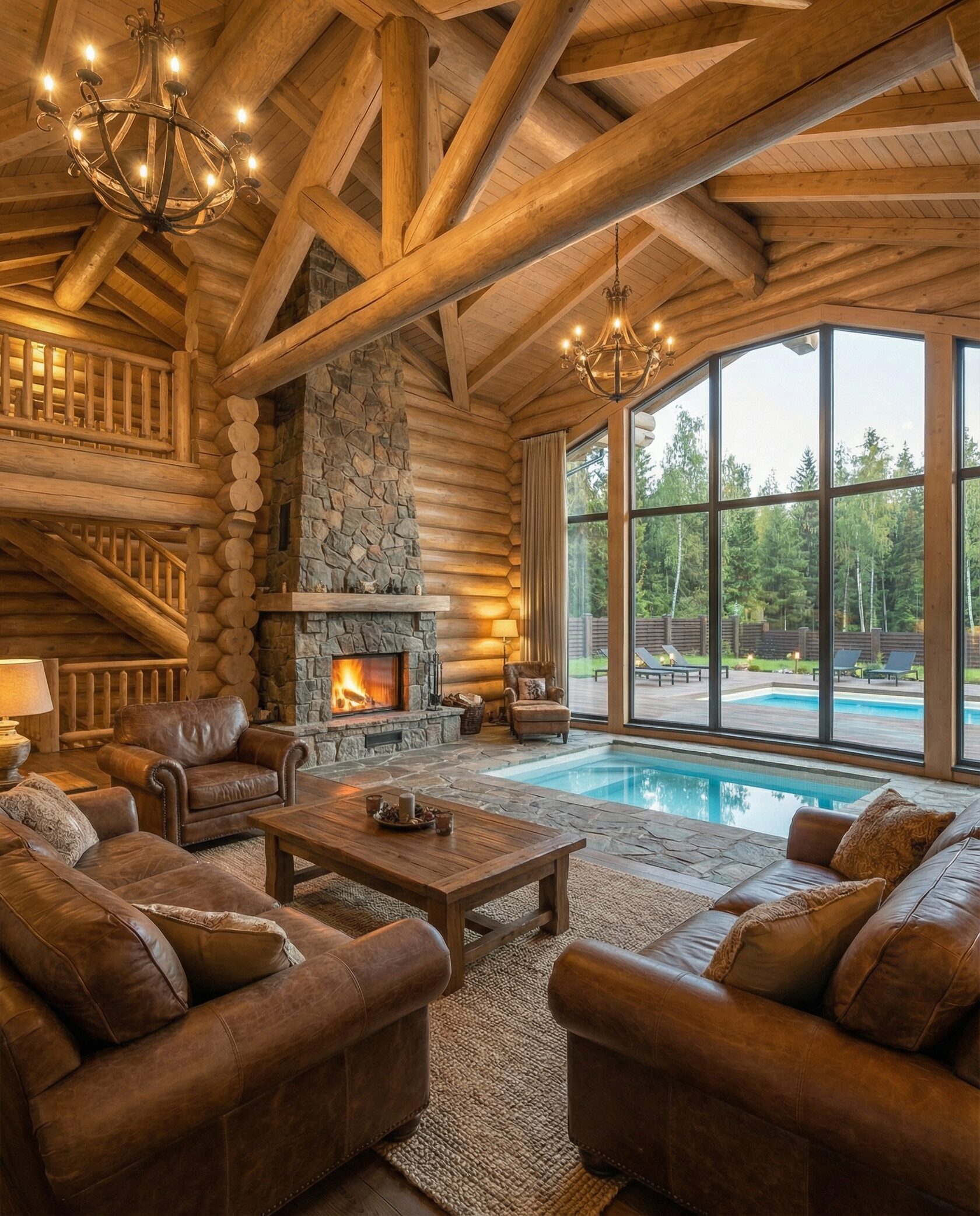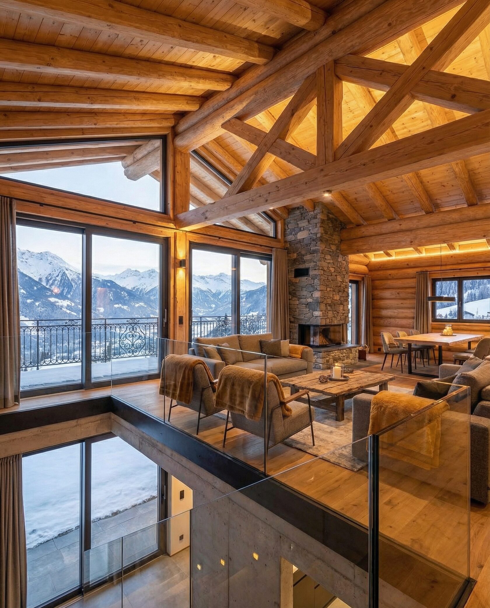 Дом «Алиот» — премиальный двухэтажный дом из оцилиндрованного бревна, где гармонично сочетаются эко-эстетика, свет, простор и технологичность. Панорамные окна на два этажа наполняют интерьер естественным светом и объединяют гостиную с природой, а камин создаёт уютный центр дома. Планировка продумана для максимального комфорта: двусветное пространство, открытая кухня с островом, просторные спальни с балконами, функциональное зонирование и стильные архитектурные элементы. Преимущества: долговечное оцилиндрованное бревно, энергоэффективные окна, шумоизоляция, просторные террасы, экологичные материалы и престижный современный дизайн. Дом «Алиот» — выбор для тех, кто ценит премиальный комфорт, простор и близость к природе.