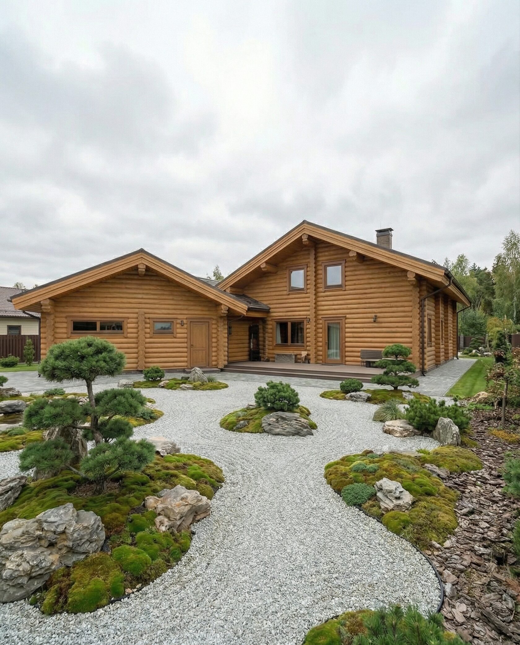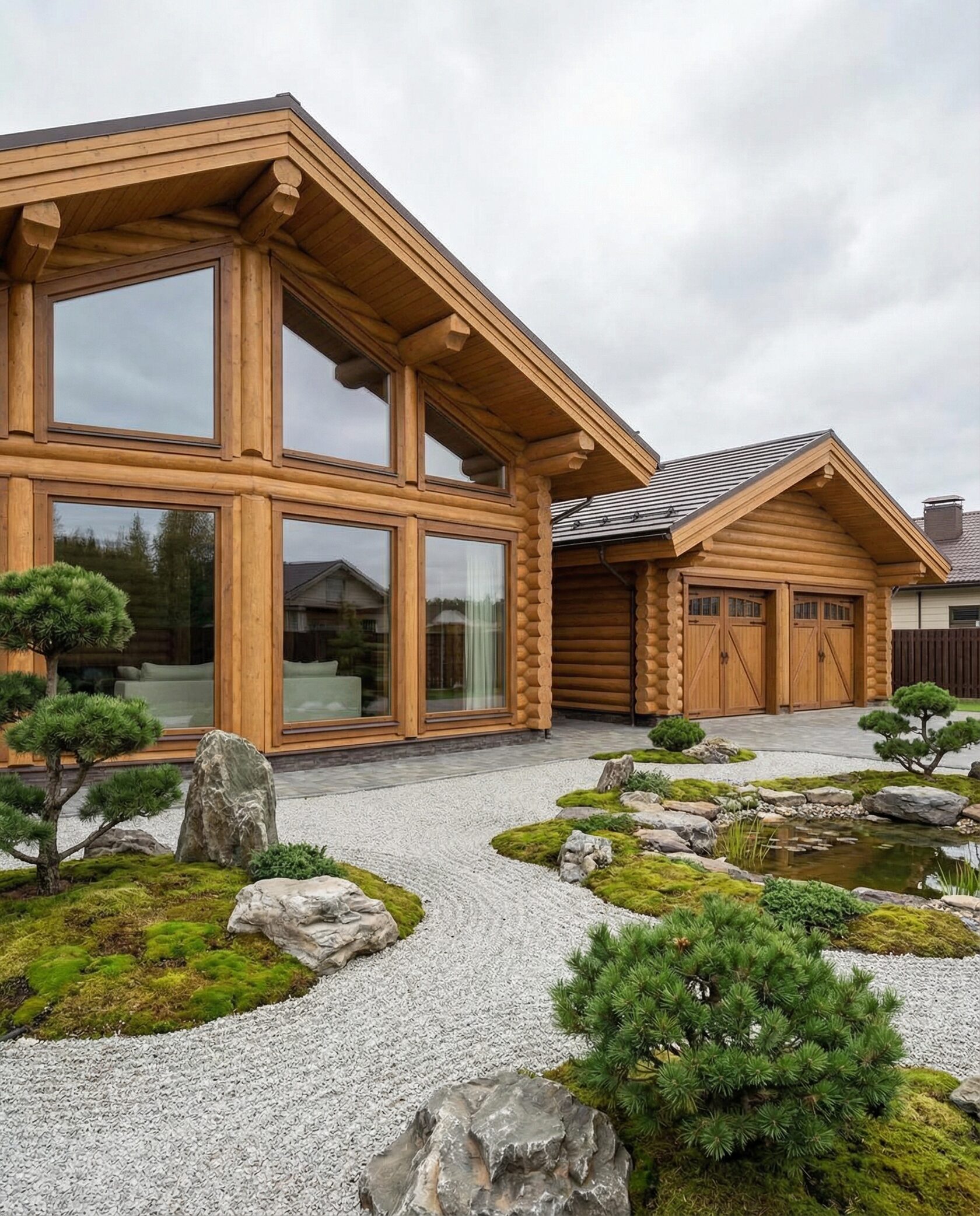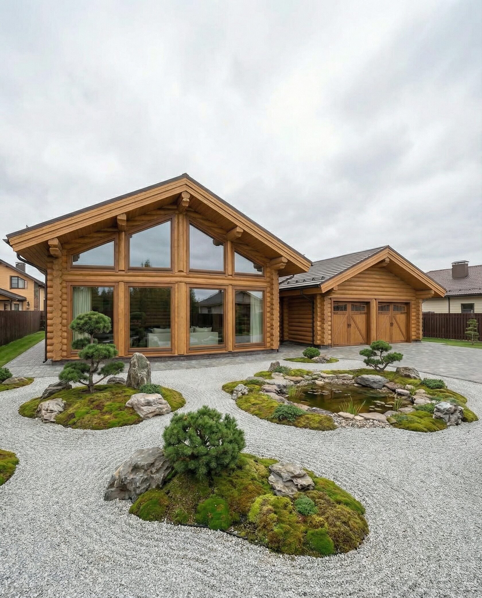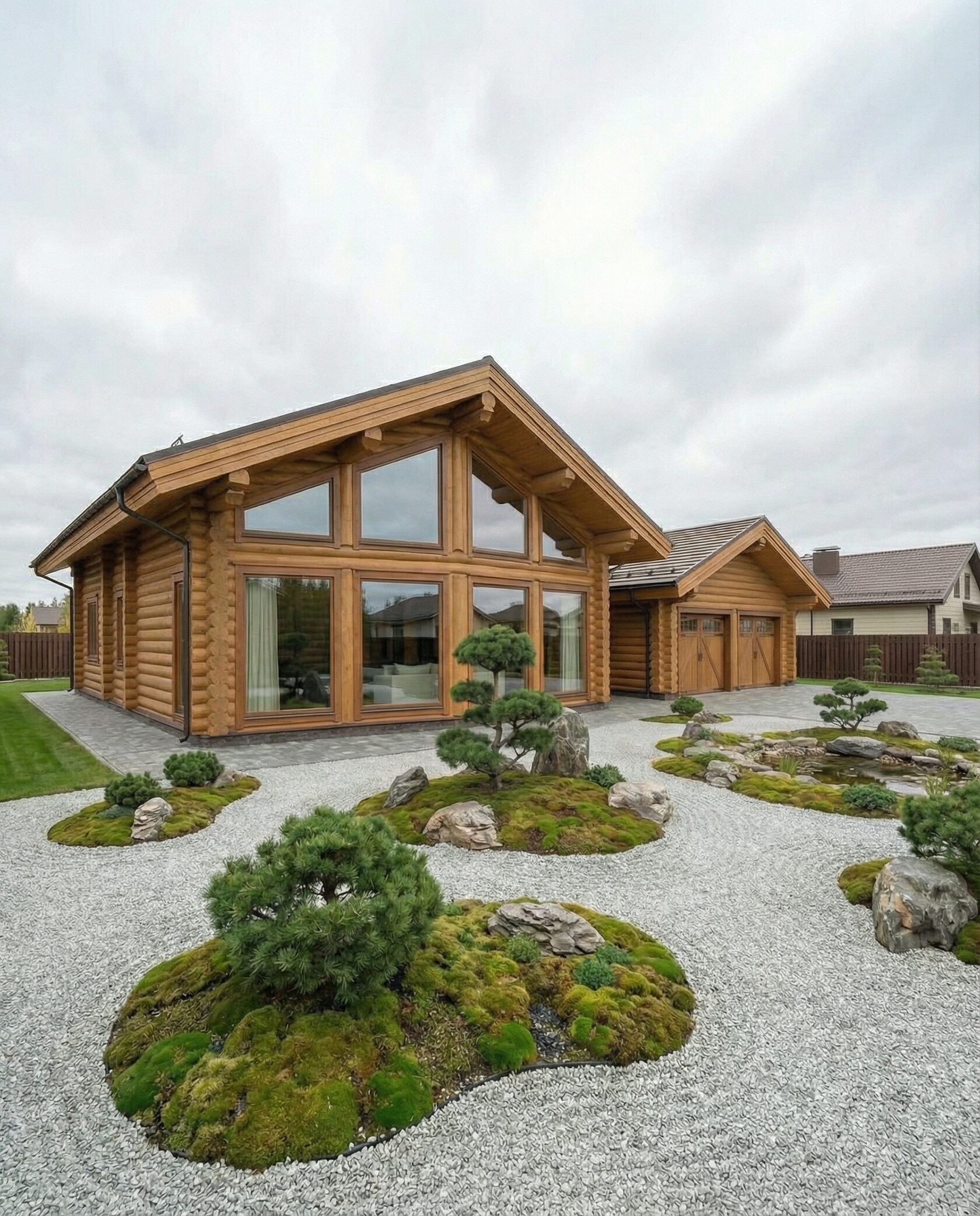 Дом «Дубхе» — элегантный загородный особняк с панорамными окнами, двусветной гостиной и камином. Пространство объединяет кухню-столовую, гостиную и зоны отдыха, а высокие потолки и натуральные материалы создают атмосферу света, простора и уюта. Перед фасадом расположен японский сад в стиле дзен, а встроенный гараж-мастерская сочетает функциональность и эстетику. Преимущества: гармоничная архитектура, японский сад, просторная гостиная с камином, открытая кухня, многофункциональный гараж, ощущение уединения и премиального комфорта. Дом «Дубхе» — идеальный выбор для ценителей стиля, природы и продуманного комфорта.