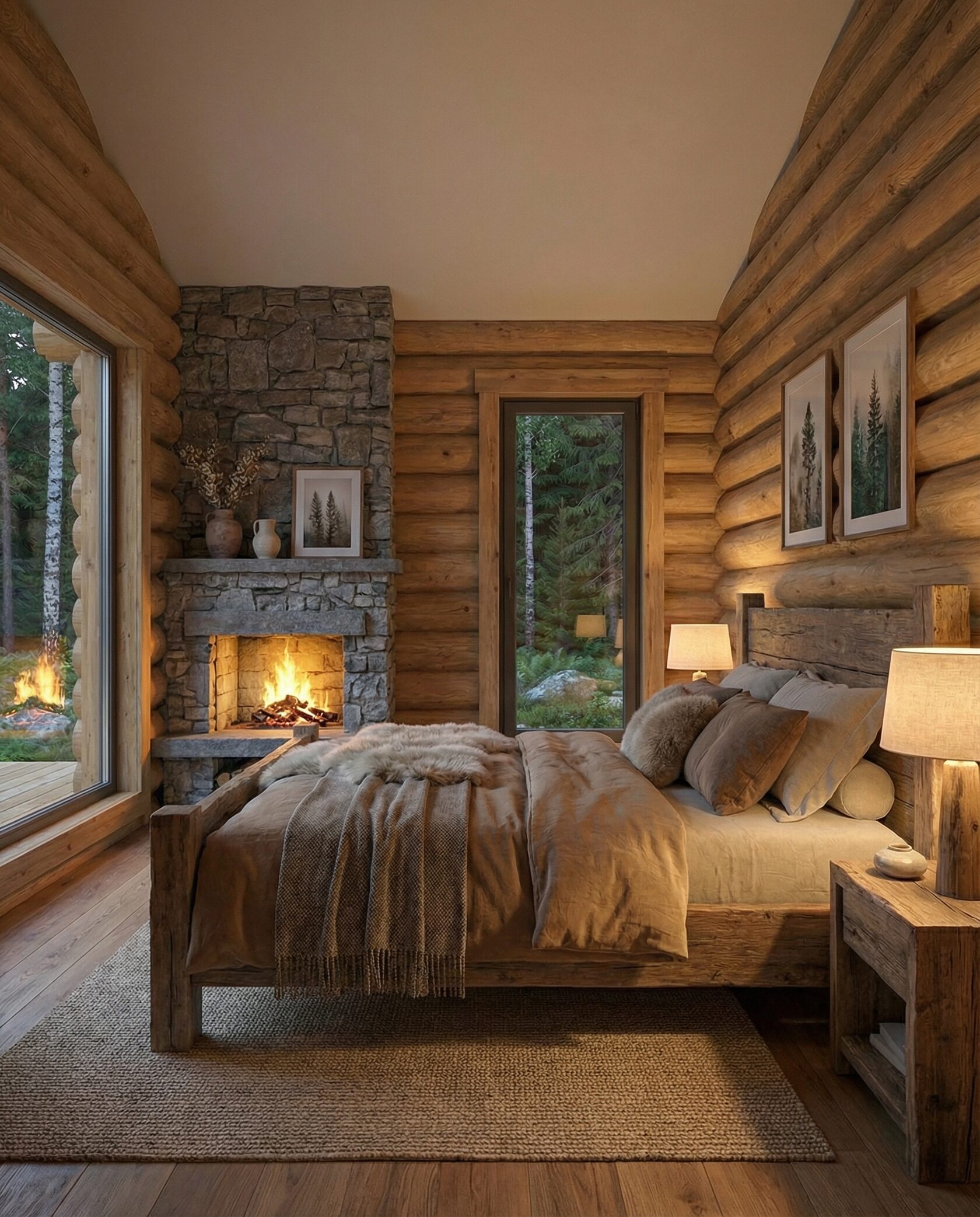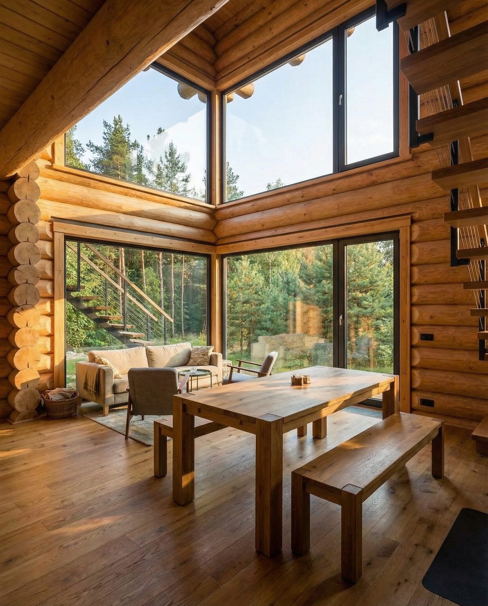 Дом «Кастор» — уединённый загородный дом с панорамными окнами, просторной гостиной и камином, объединяющим интерьер с открытой террасой. Высокие потолки, деревянные балки и натуральные материалы создают атмосферу лесного шале и уюта. Приватная спальня с камином, открытая столовая и гармония с природным ландшафтом обеспечивают комфорт, отдых и единение с лесом. Преимущества: панорамные окна, камин, терраса, приватная спальня, открытая столовая, натуральные материалы, интеграция с природой. Дом «Кастор» — идеальный выбор для тех, кто ценит уединение, уют и гармонию с природой.