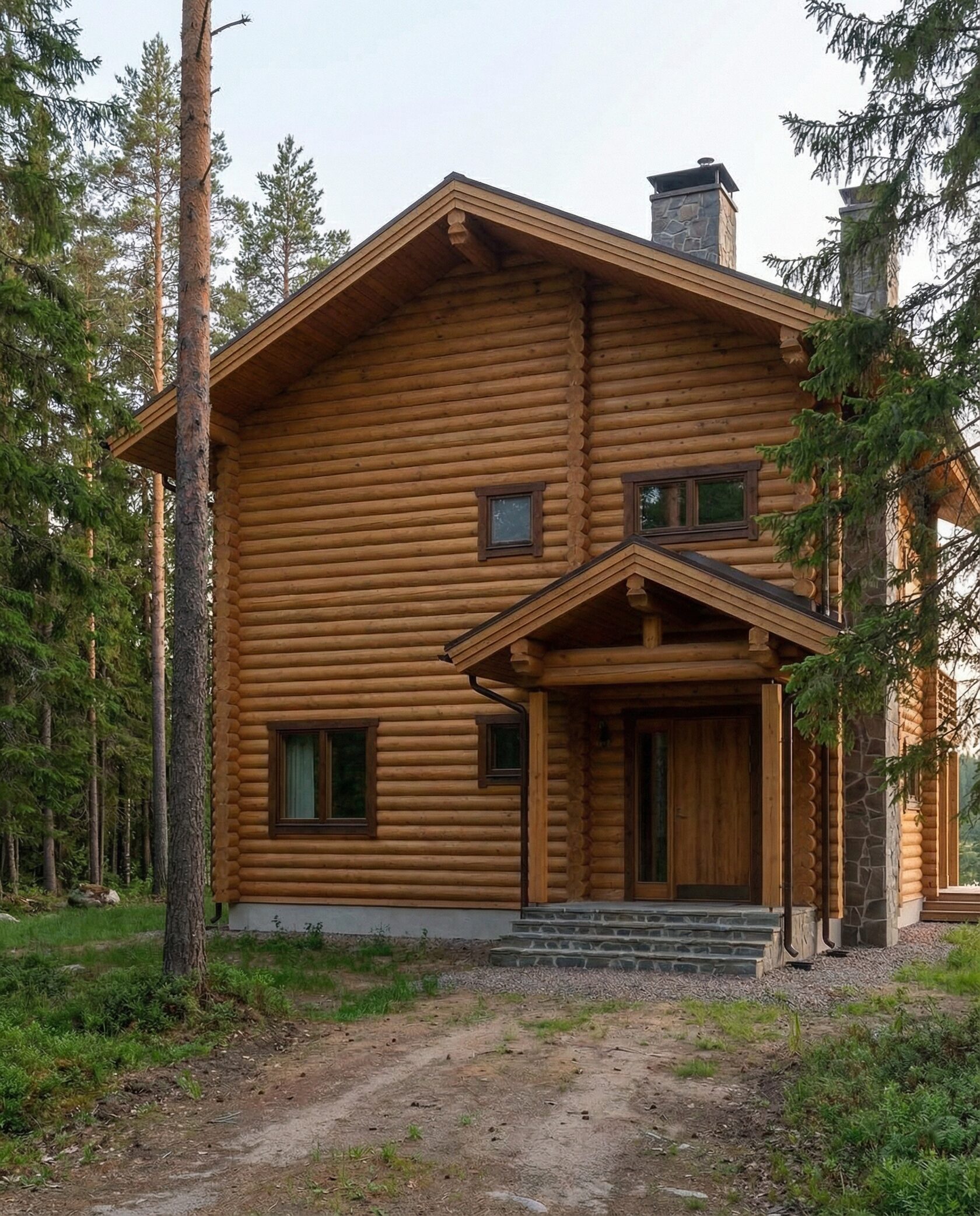Дом «Альгети» — двухэтажный дом из оцилиндрованного бревна в стиле современной классики с элементами скандинавского дизайна. Натуральное дерево обеспечивает тепло- и звукоизоляцию, создавая комфортный микроклимат круглый год. Широкие панорамные окна, высокий второй свет и выразительная асимметрия кровли делают интерьер просторным и светлым. Открытая терраса плавно переходит в гостиную с каминной зоной, а первый этаж объединяет кухню, столовую и зону отдыха. На втором этаже расположены приватные комнаты с прекрасным видом на природу. Преимущества: долговечные экологичные материалы, точная геометрия бревна, энергоэффективность, высокий уровень освещения, удобное зонирование и комфорт для семьи. Дом «Альгети» — идеальный выбор для круглогодичного проживания, сочетая стиль, уют и близость к природе.